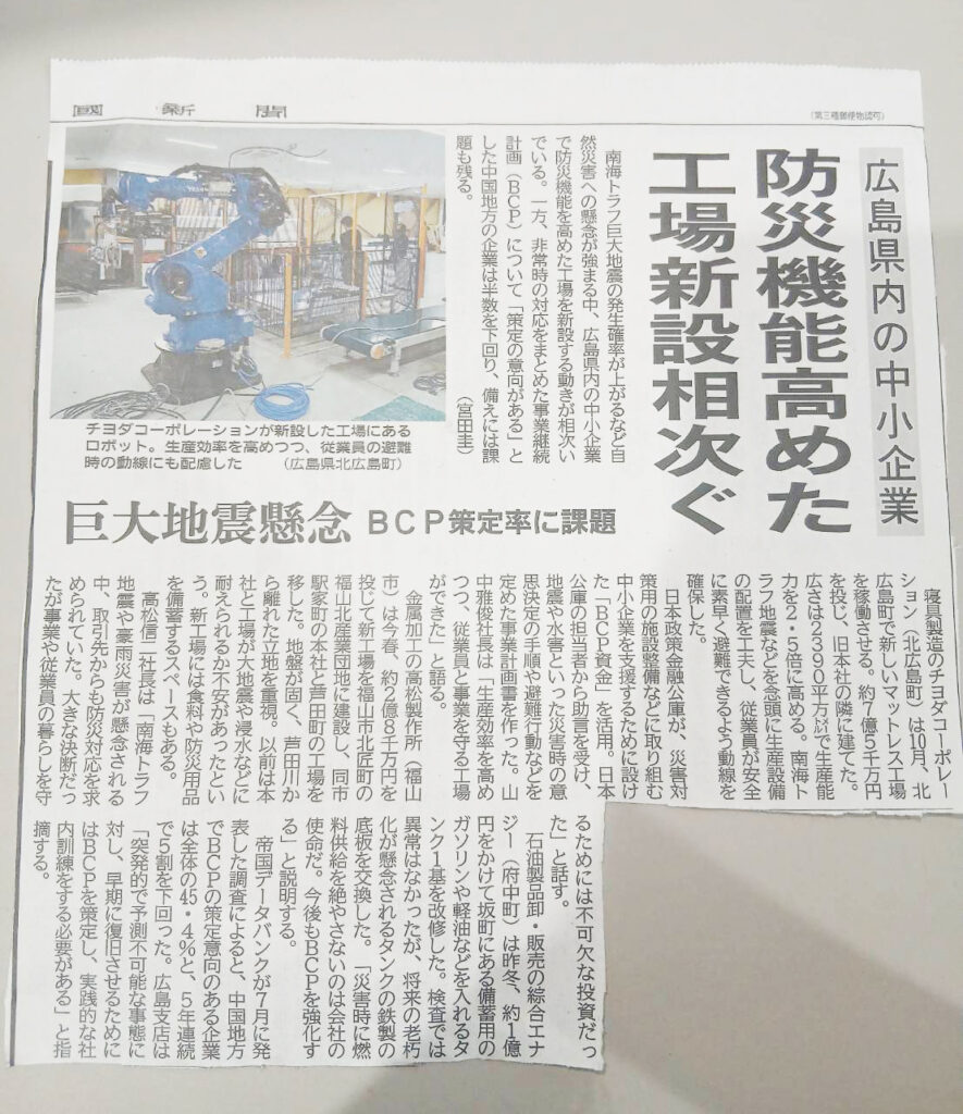 この度、中国新聞にて、弊社が新しく導入した最新鋭の機械をご紹介いただきました。